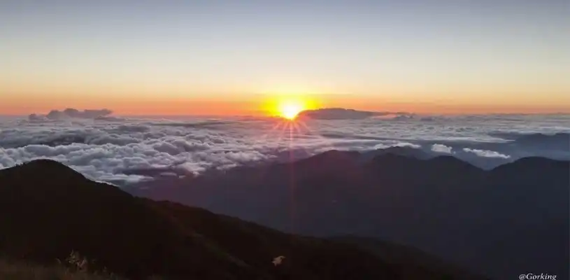 Desde este punto del mirador, no solo ves el Sol salir, sino ves un manto de nubes blandas aligeradas por la suave briza, las montañas que lo rodean a pesar de lo altas que son, se ven pequeñas; sin contar que el valle que oculta estas ocultas estas montañas iluminan poco a poco en cuanto sale el Sol Naciente.