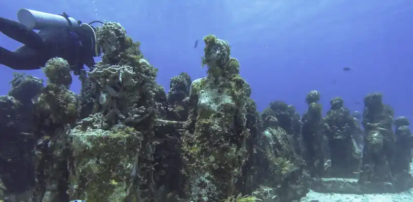 Lo que lo hace increíble a la Isla Mujeres son las más de 550 esculturas se encuentran sumergidas en el área de exhibición de Manchones cerca del sur de Isla Mujeres y 17 esculturas en el área de Nizuc al sur de Cancún. Todas se encuentran en el parque nacional Costa Occidental de Isla Mujeres, Punta Cancún y Punta Nizuc.